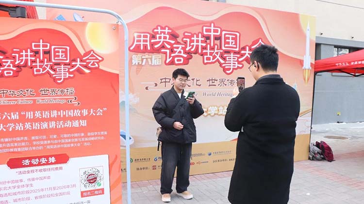第六届“用英语讲中国故事大会”各地活动正在火热进行中,中国故事沈阳组委会于12月15日来到东北大学校园内,宣传活动,并为有意向的同学们现场报名,并录制个人作品上传。