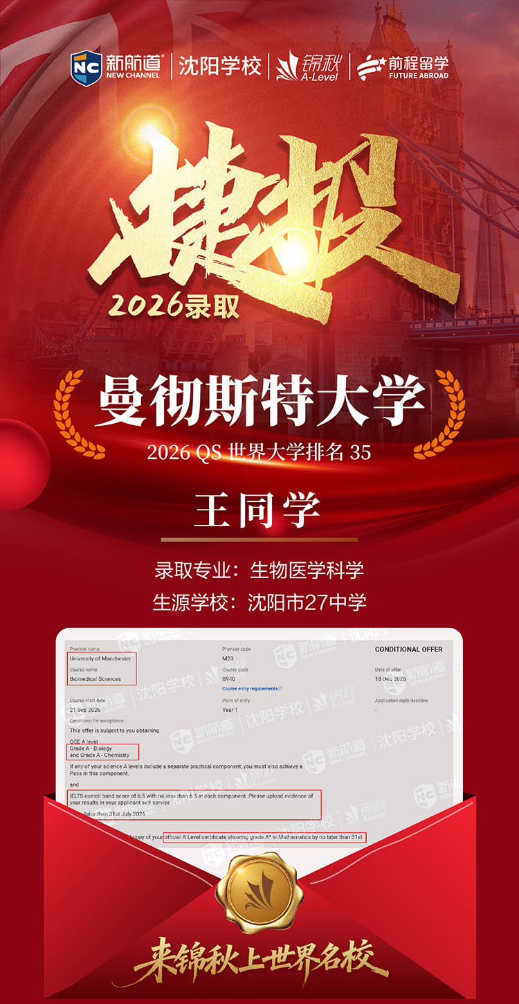 2026王同学英国本科录取详情: