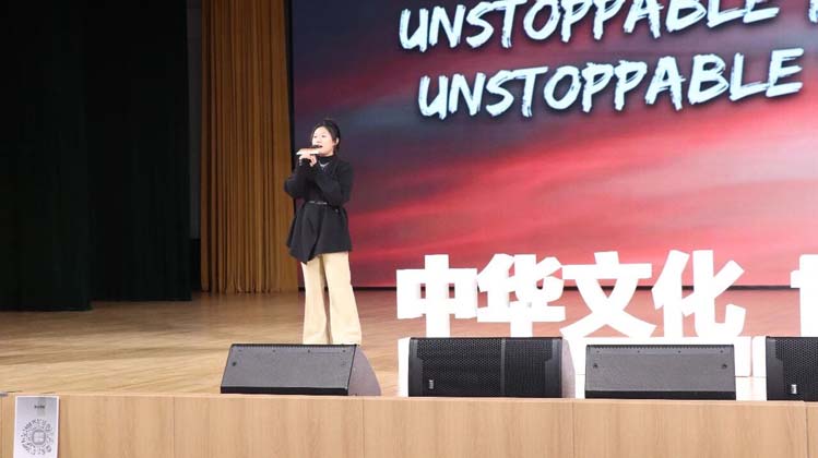 故事之外,还有文化的盛宴。沈阳理工大学的郭乙呈同学带来了精彩的个人演唱《Unstoppable》,用跃动的旋律传递着勇气、决心和坚持,强调在面对困难时保持自信和坚定,相信自己能够克服障碍。