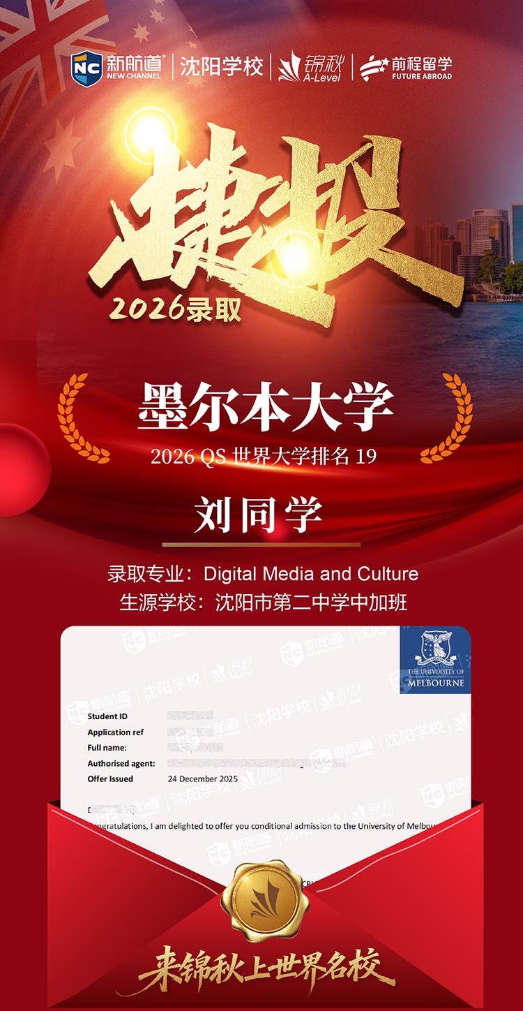刘同学墨尔本大学 有条件录取
