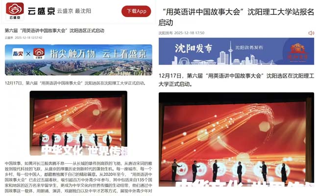 联合新华网、指尖新闻沈报全媒体、云盛京沈阳广电、沈报全媒体等本地头部媒体平台,聚力“用英语讲中国故事”沈阳站宣传!以英语为桥,让世界听见沈阳之声、读懂中国之美!